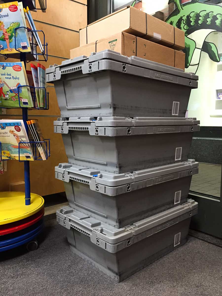 Auch die Kisten mit den angelieferten Bücher werden immer zahlreicher, denn glücklicherweise mögt Ihr unsere Buchauswahl so sehr, das wir häufiger nachbestellen können, als wir es uns vorgestellt haben. Was für ein Glück: es werden Bücher gesucht !