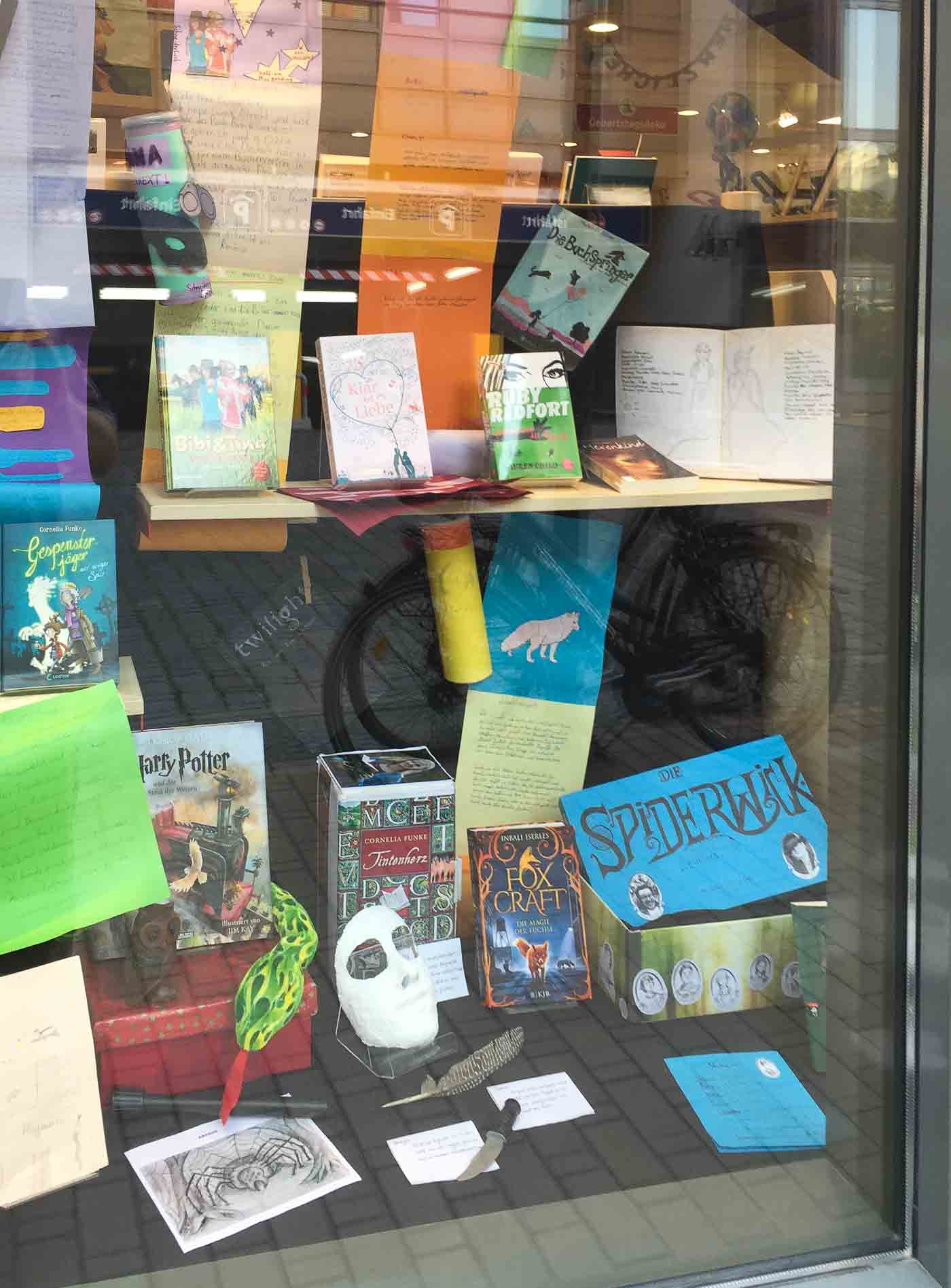 Viele Kunden sind vor dem Schaufenster stehen geblieben und haben sich die Leserollen und die vorgestellten Bücher angeschaut. Die Arbeiten von Lotta, Linnea und Otto haben uns besonders gefallen.