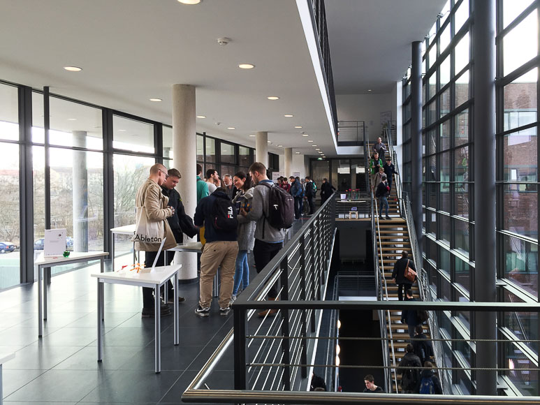 In den verschiedenen Ebenen konnten Labore und Experimente besichtigt werden und währenddessen konnte man beim Treppensteigen Musik machen.